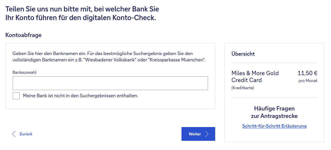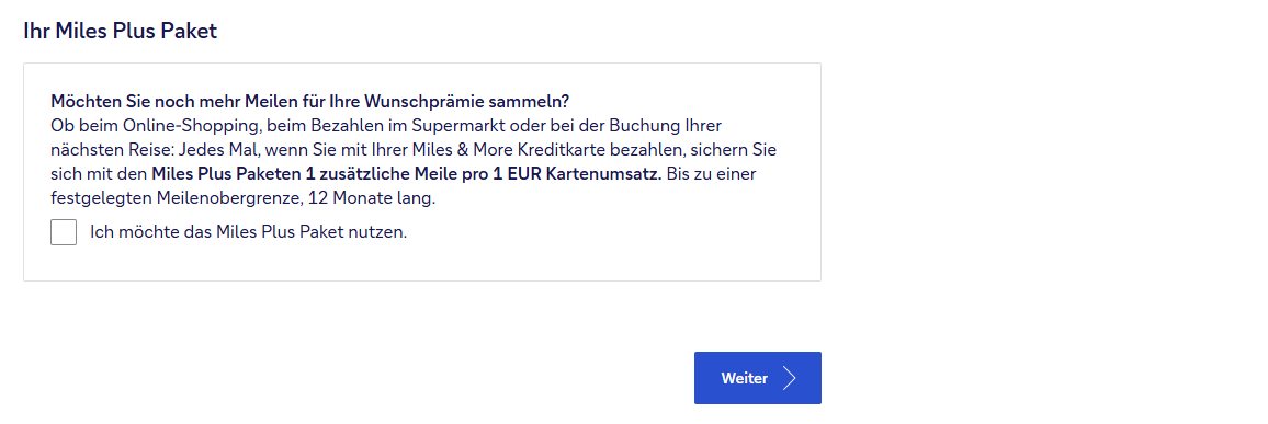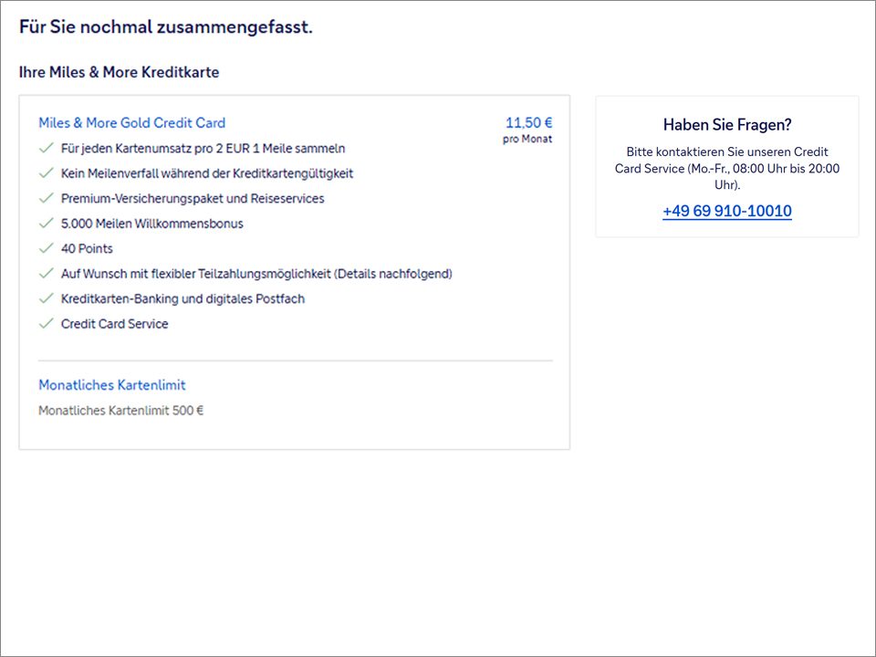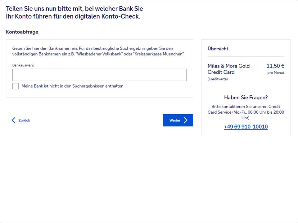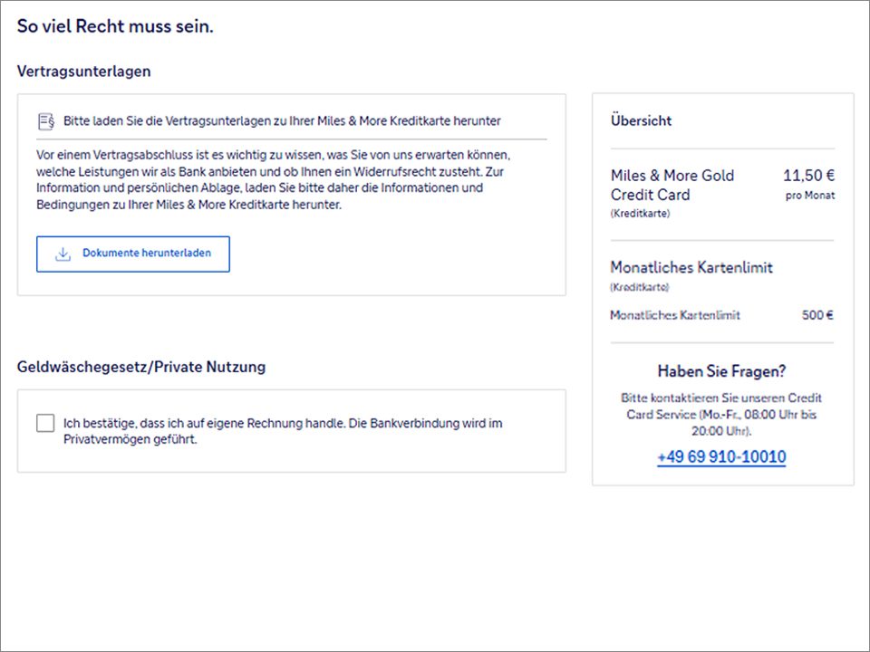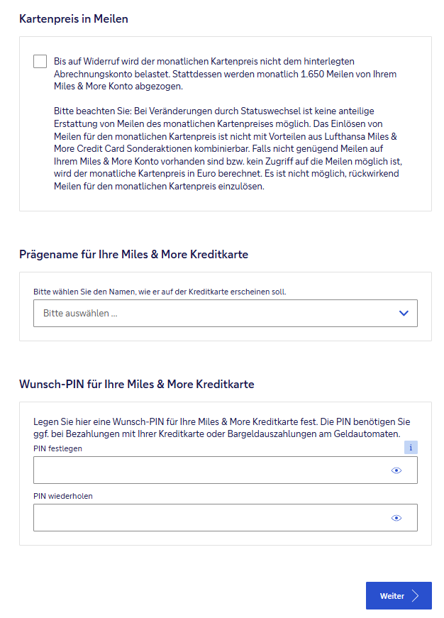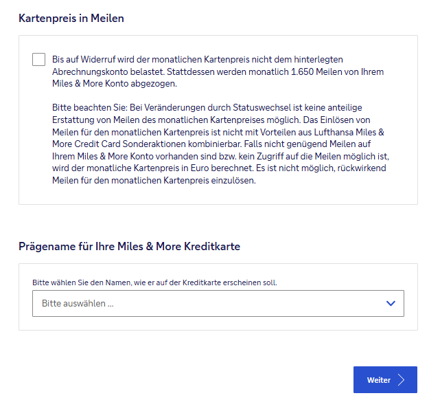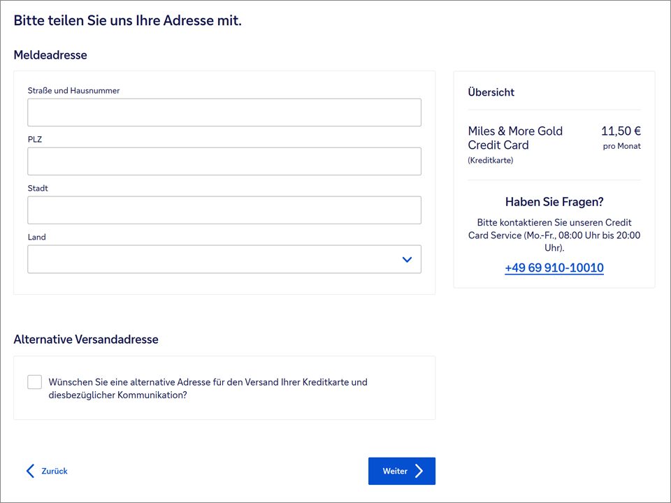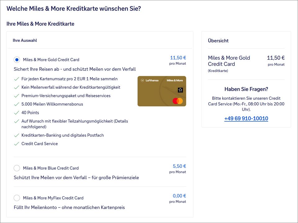 Um Ihre Miles & More Kreditkarte zu beantragen, ist die Teilnahme am Miles & More Programm erforderlich.