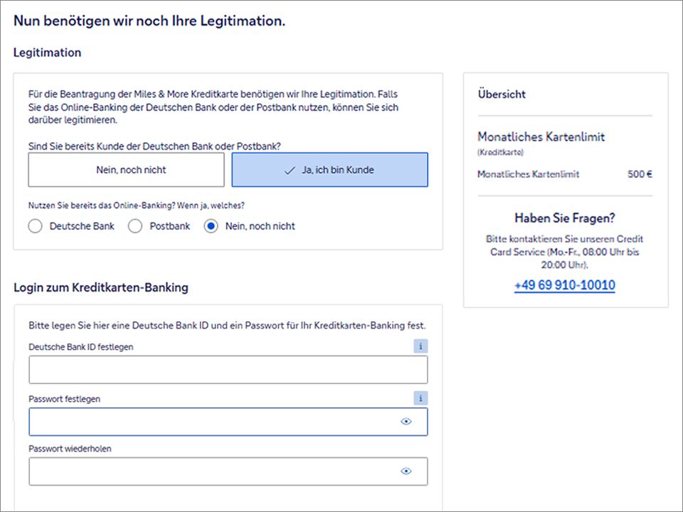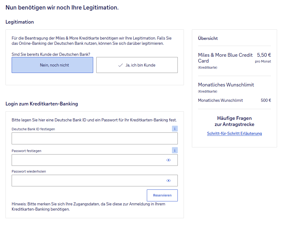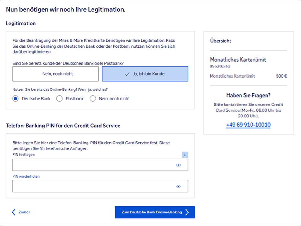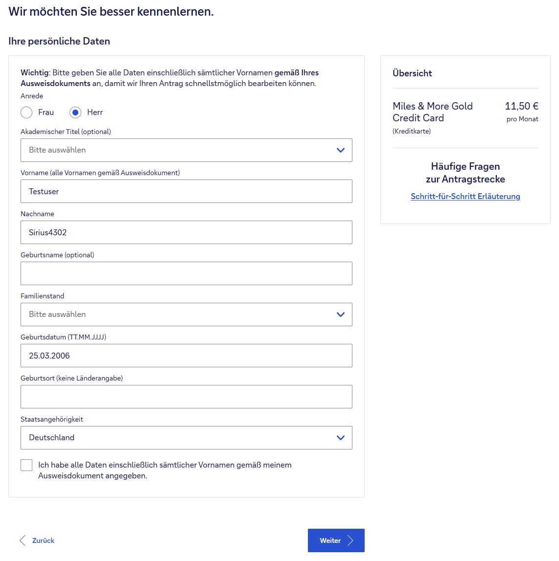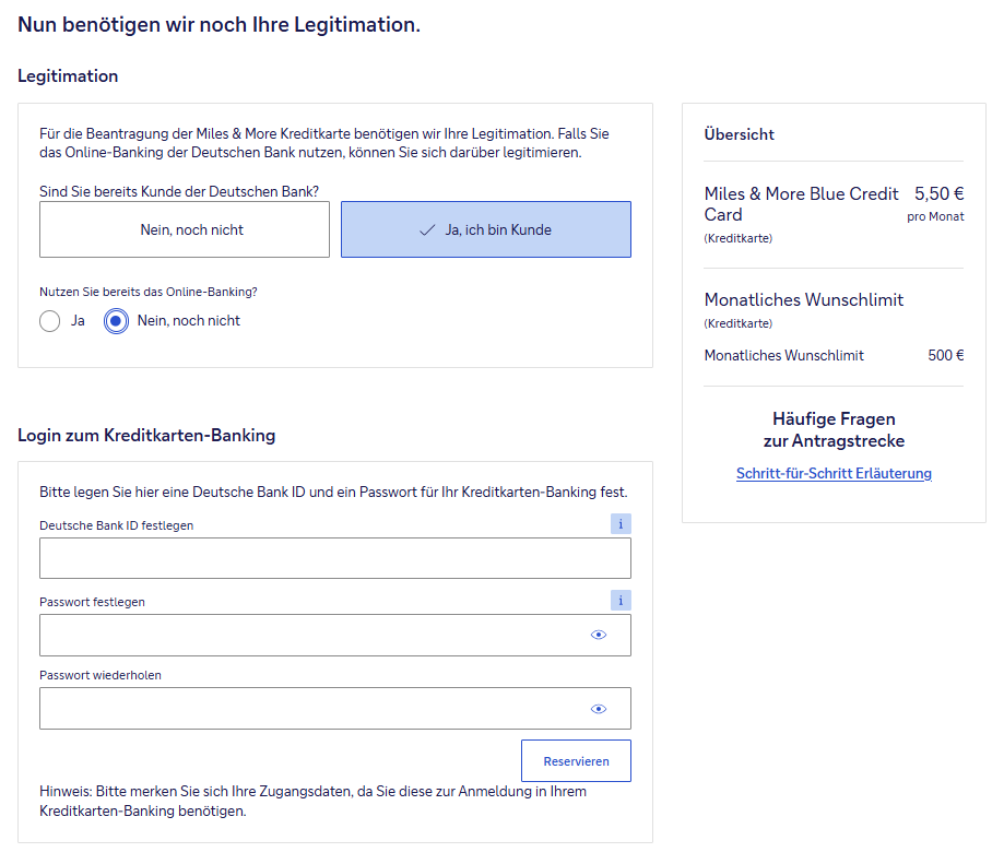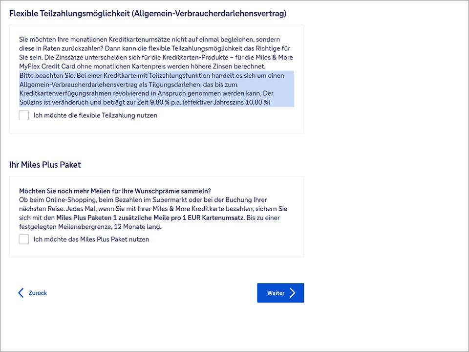 Um Ihre Miles & More Kreditkarte zu beantragen, ist die Teilnahme am Miles & More Programm erforderlich.