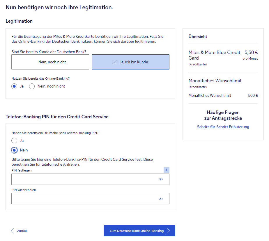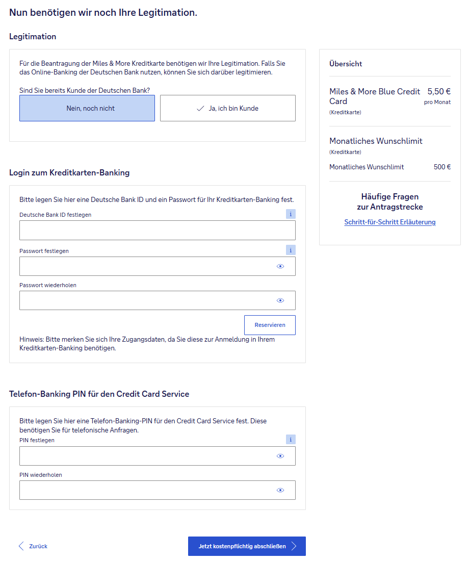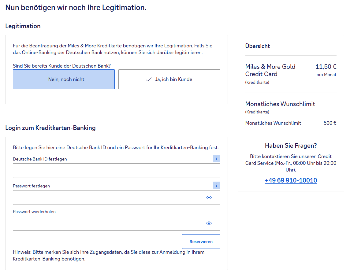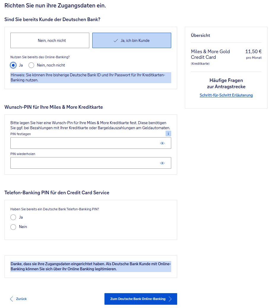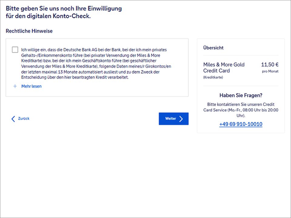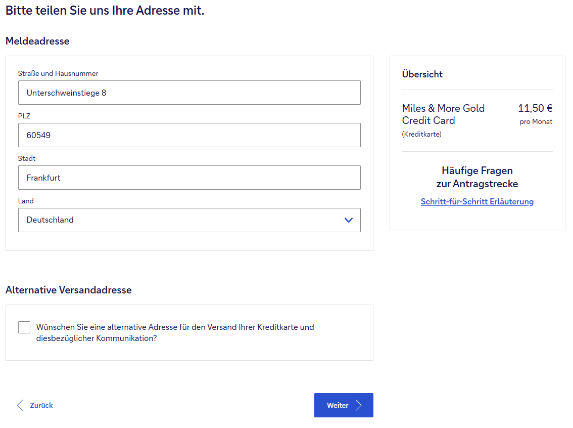 Um Ihre Miles & More Kreditkarte zu beantragen, ist die Teilnahme am Miles & More Programm erforderlich.