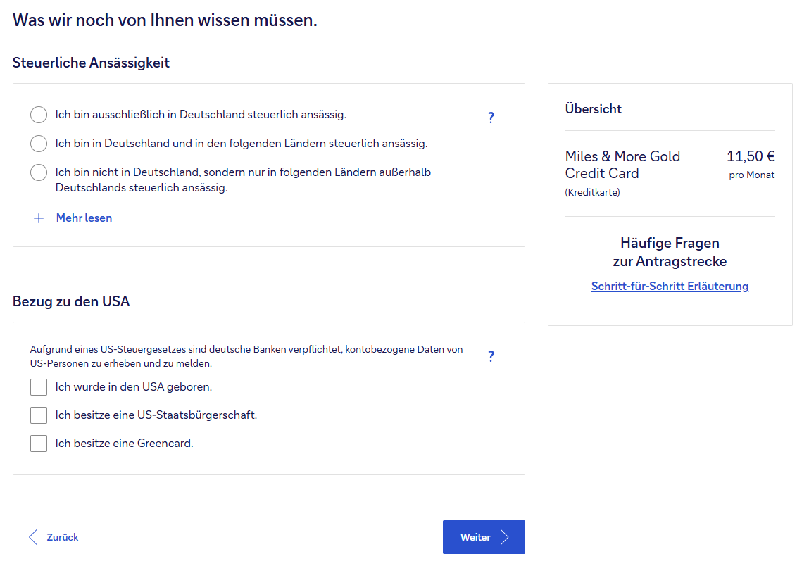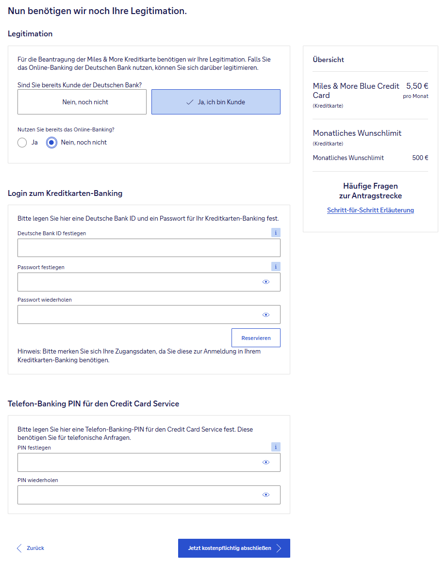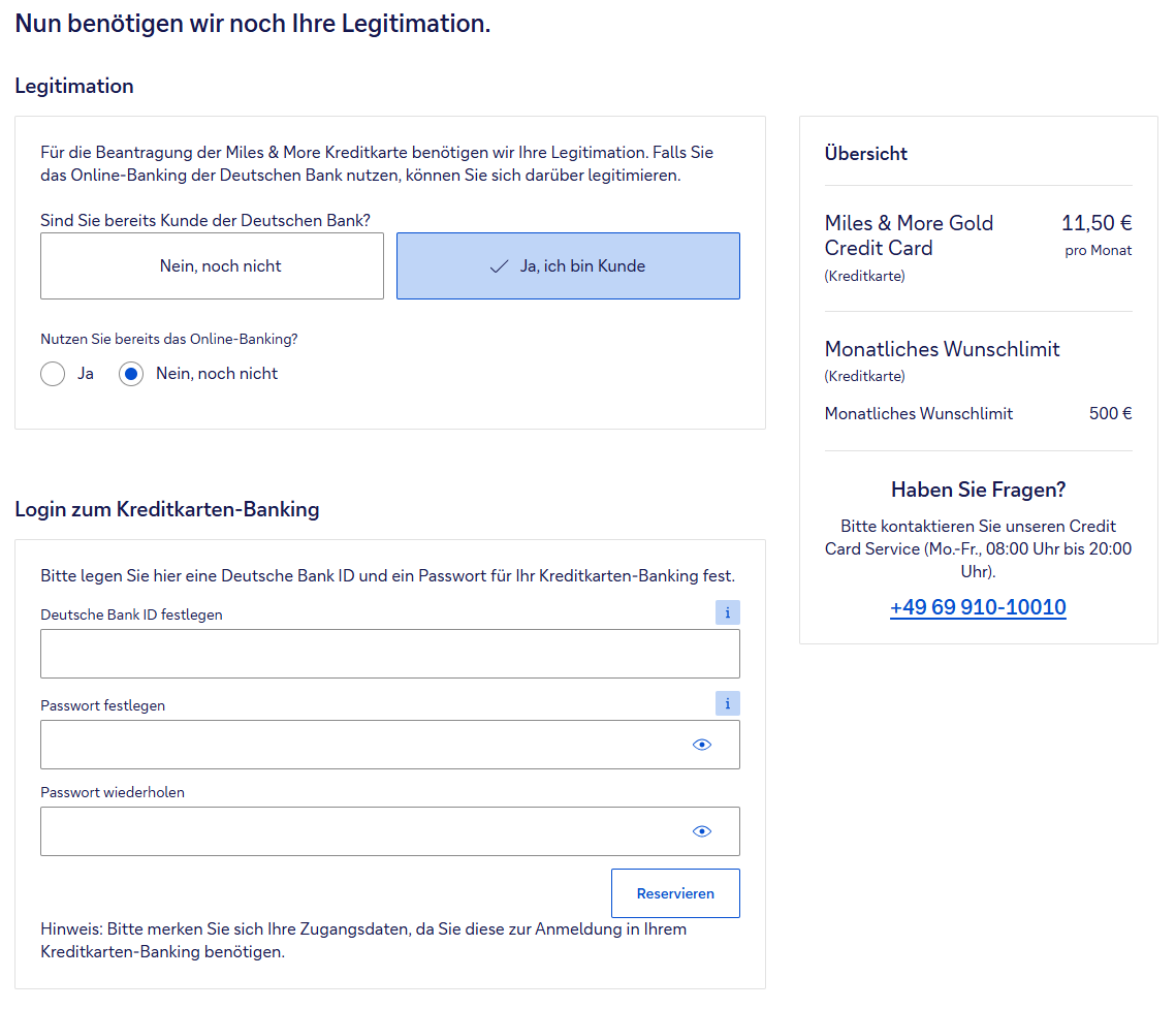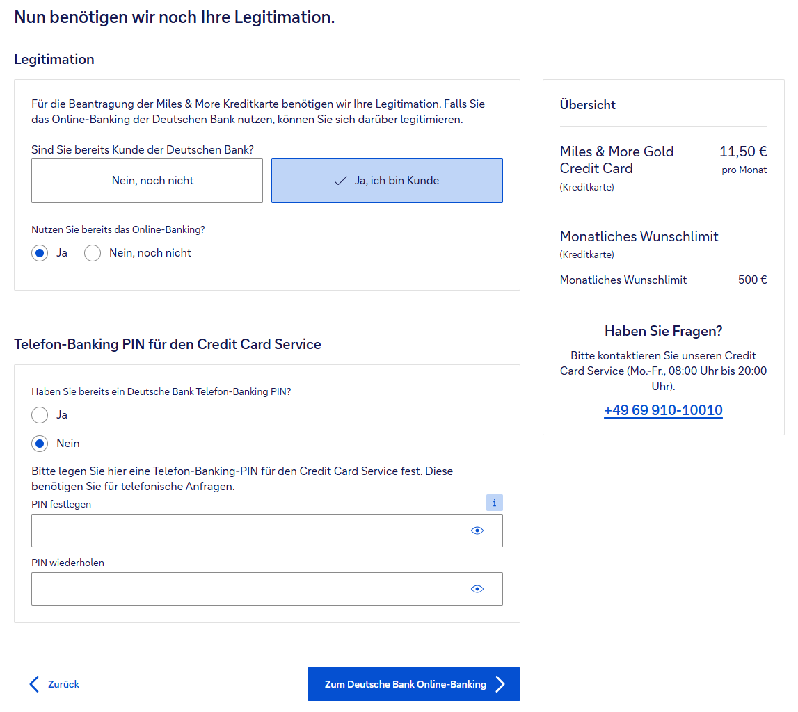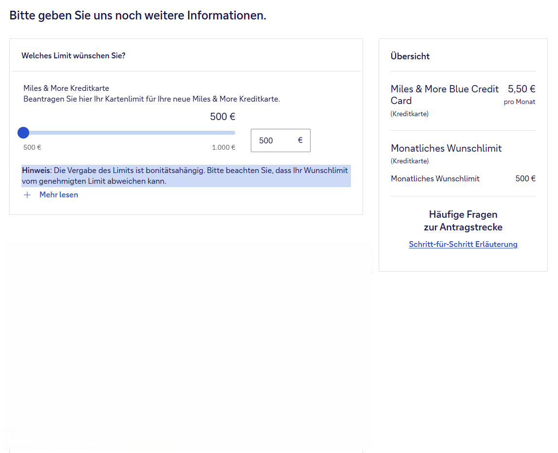 Um Ihre Miles & More Kreditkarte zu beantragen, ist die Teilnahme am Miles & More Programm erforderlich.