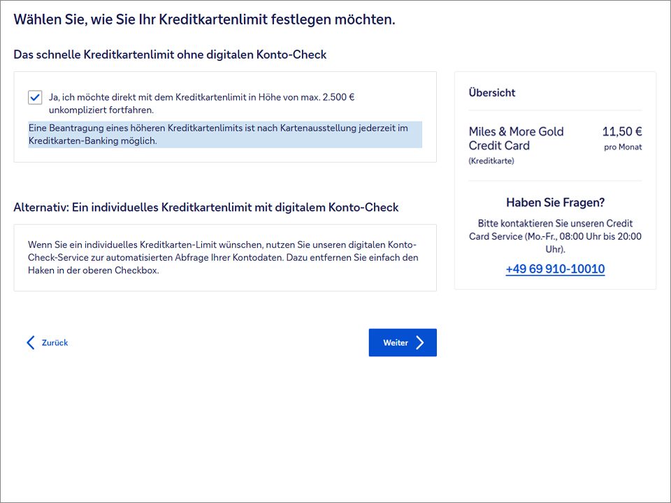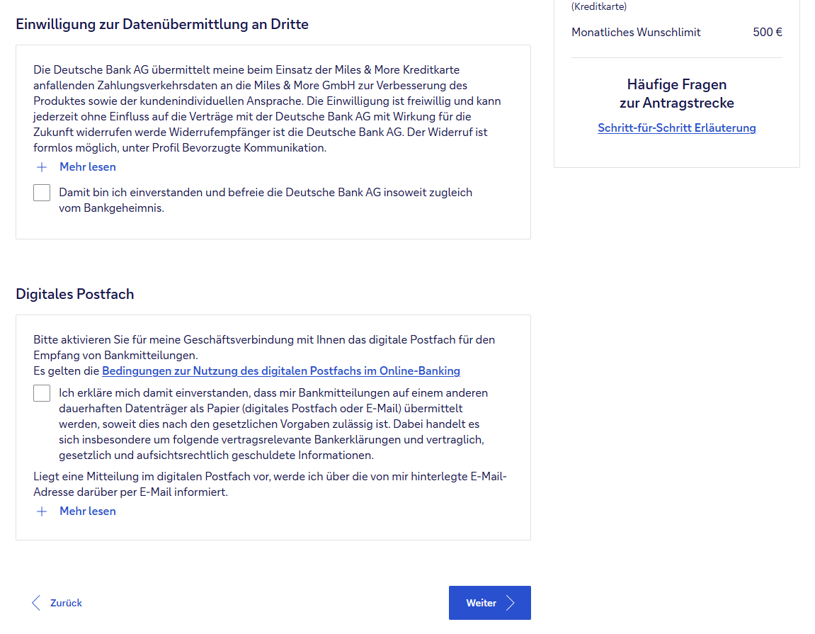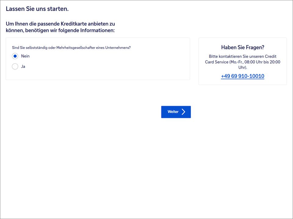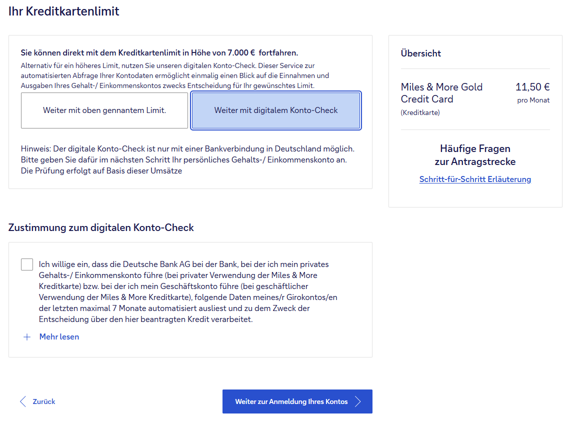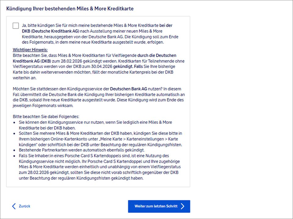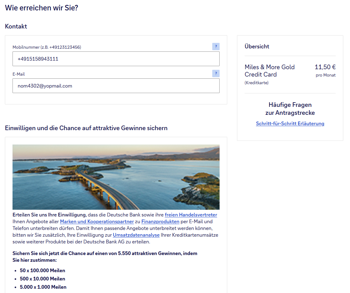 Um Ihre Miles & More Kreditkarte zu beantragen, ist die Teilnahme am Miles & More Programm erforderlich.