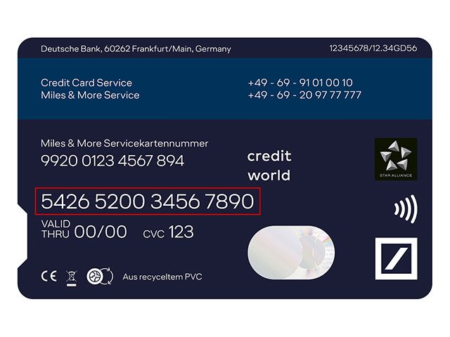 Die 16-stellige Kreditkartennummer der Lufthansa Miles & More Credit Card nutzen Sie für alle Zahlungsvorgänge, wie z.B.